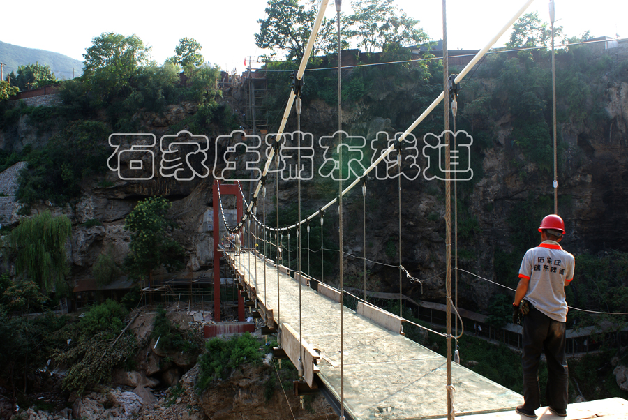 本橋梁工程位于山西娘子關瀑布景區內,建于2017年,為懸索橋型。本橋全長71.48m,總寬2.3m,凈寬1.8m。